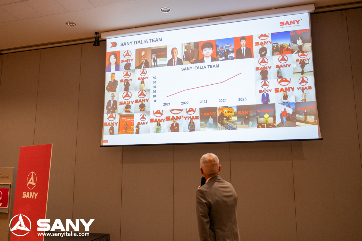 Durante il meeting con i concessionari, il Vicepresidente di SANY Italia Guido Peveri ha presentato la squadra commerciale con cui lavora da oltre cinque anni, ricordando i primi passi dell’azienda quando “tutto era racchiuso in una piccola stanza con pochi tavoli, ma con grandi sogni e tanta determinazione”.